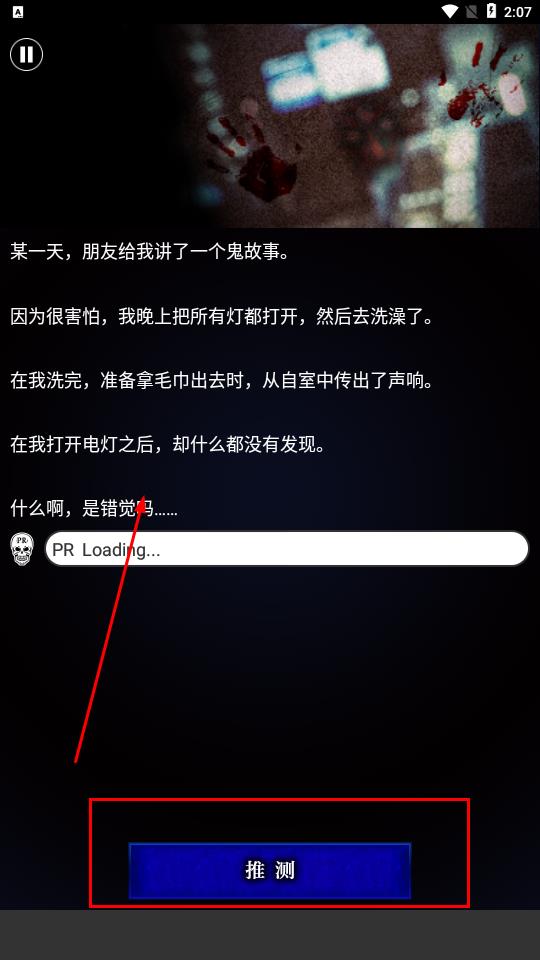 2、阅读完故事段落依据情节点击推测按钮,对异常声响等事件进行推理,考验逻辑与对恐怖细节的捕捉。