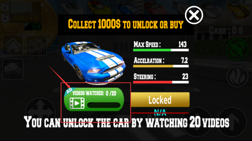 4、激励广告系统提供临时车辆使用权,观看完整视频可体验限定款超级跑车。
