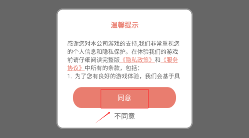 1、首次启动需阅读并确认用户协议,完成授权后进入游戏主界面。