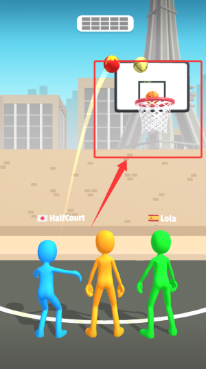 4、通过滑动屏幕控制投篮轨迹,将篮球精准投入篮筐得分。