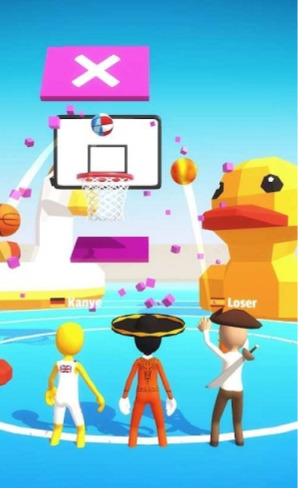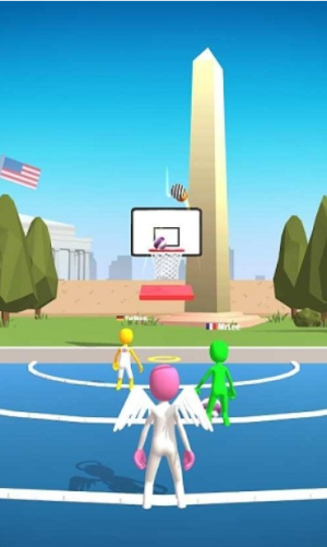 1、夸张的橡皮人造型设计,角色动作滑稽充满魔性趣味,投篮时的表情变化与肢体语言带来欢乐的游戏氛围。