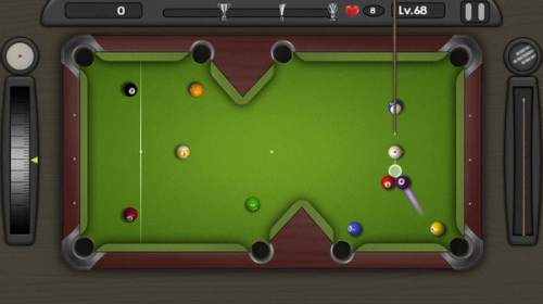 1、极简UI设计,力度控制条渐变色彩标识,辅助瞄准线随击球角度动态变化,即便是初次接触台球的新手,也能在三次尝试内掌握推杆、定杆等基础技巧。