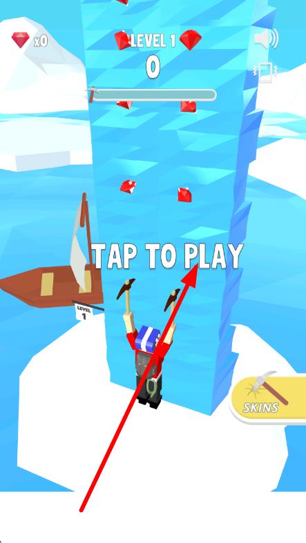 1、在关卡开始界面,点击TAP TO PLAY,操控角色用冰镐攀爬冰山,收集钻石,开启挑战。