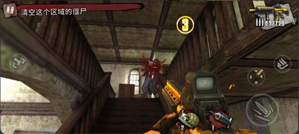 2、场景利用技巧:利用关卡中的狭窄通道、高地等地形限制丧尸移动,减少被围攻的风险,同时借助掩体进行射击与换弹,降低受伤概率。