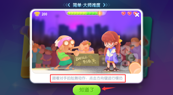 4、跟着对手的尬舞动作,点击方向键进行模仿就可以了。