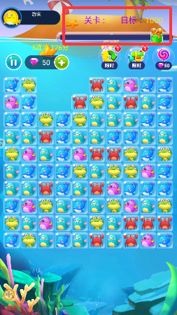 4、右上角显示关卡要过关的积分,积分够了即可过关。