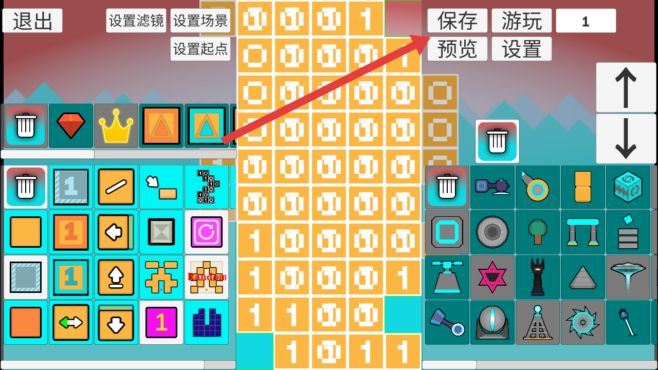 3、在场景编辑完毕,可以选择点击右上角保存的按钮,先保存再查看最终的搭建效果。