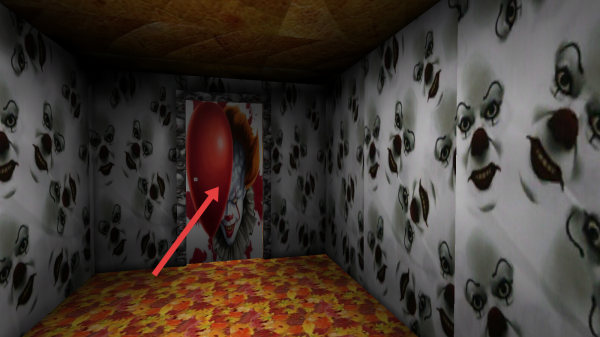 1、进入游戏一开局场景探索,进入小丑主题房间后,仔细观察墙面的海报,特别是带有红气球小丑的那张。