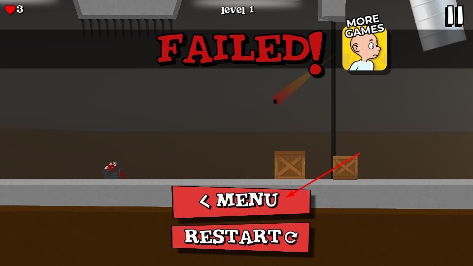 3、失败后点RESTART重开或点MENU回主界面,反复挑战关卡,提升操作技巧能够去解锁新内容。