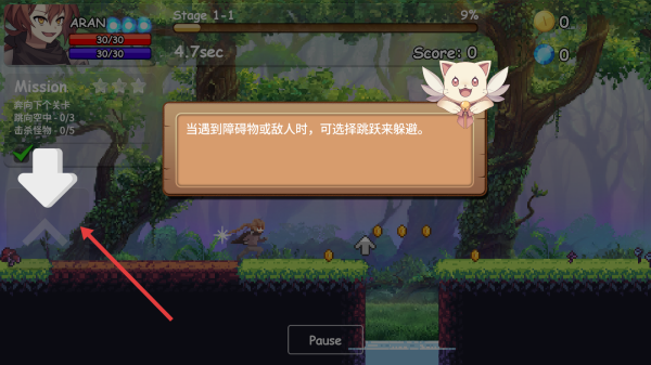 2、当遇到障碍物或敌人时,可选择跳跃来躲避,通过灵活操作角色跳跃,避开危险,继续前行。