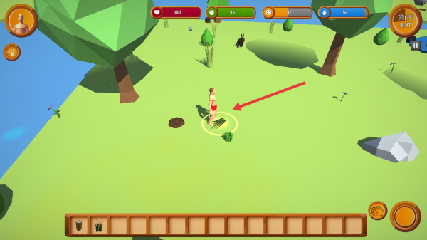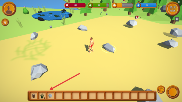 1、在场景中移动角色,靠近可互动的物品,如地上的植物等,点击即可进行采集,收集到的物品会存放在下方的物品栏中。