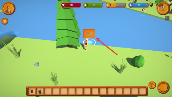 2、当你靠近水源等可利用的资源点时,会出现饮用等交互选项,点击该选项可进行相应操作,满足角色的生存需求。