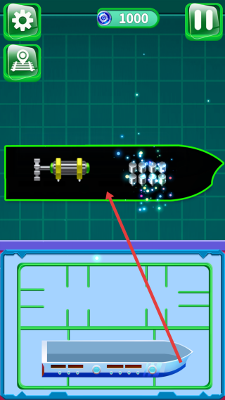 2、船舶组装在收集到相应的部件,如引擎、金属模块后,按照游戏的指引,将这些部件拖动到船体框架内合适的位置。