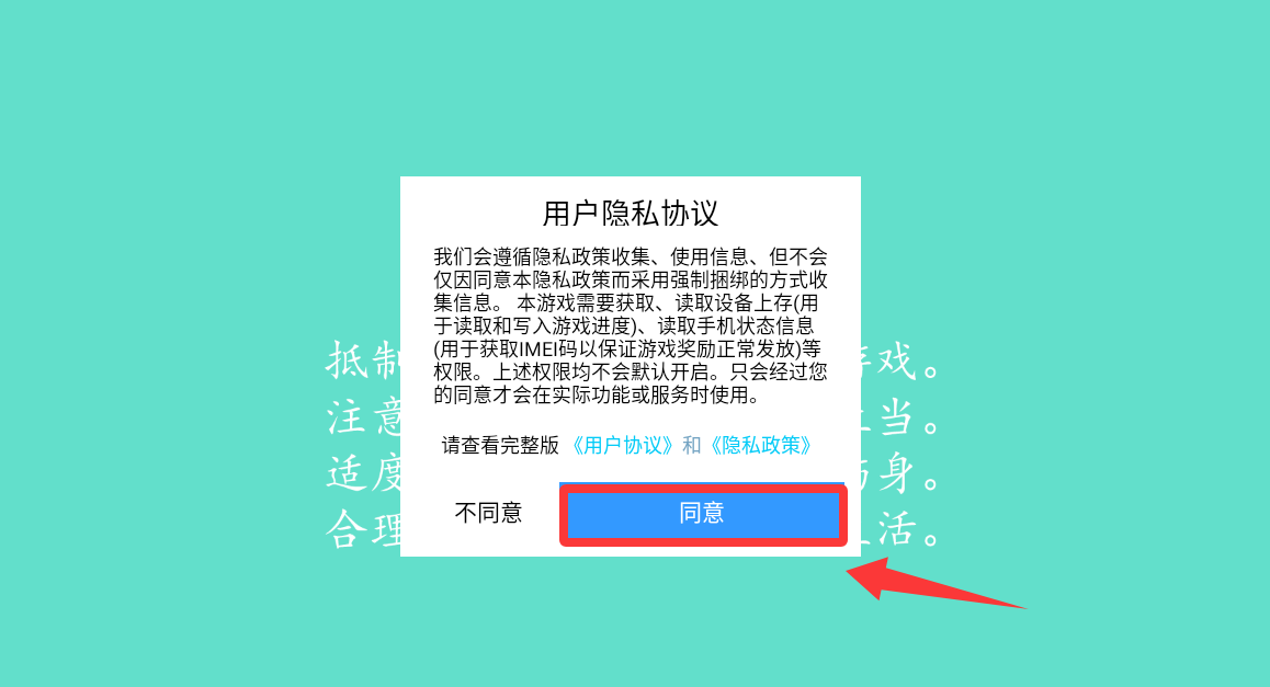 1、点击用户隐私协议的同意并进入。