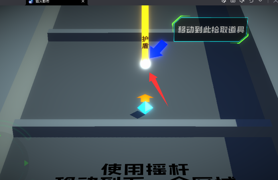 4、移动到红色箭头那里拾取护盾道具。