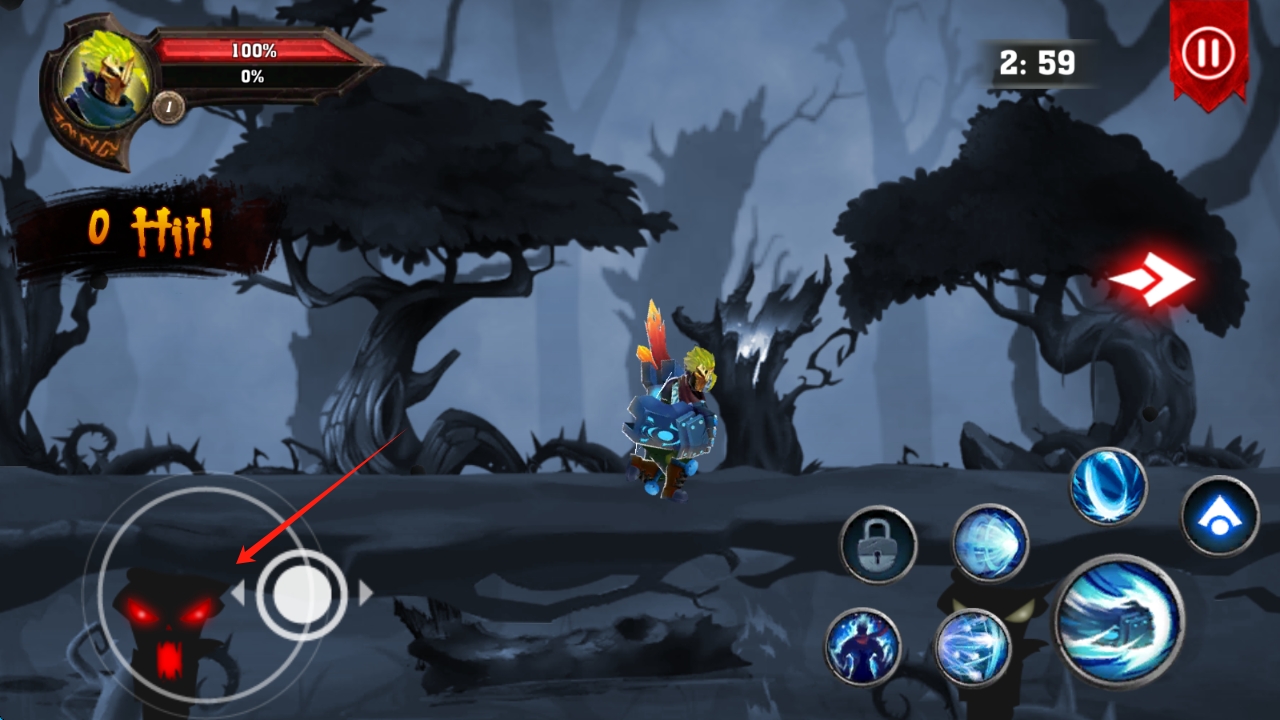 3、战斗中,滑动左侧摇杆,操控角色移动,点击右侧技能按钮,释放技能击败敌人,拨动轮盘移动人物。