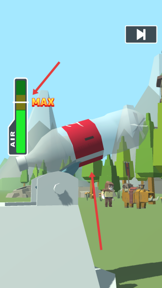1、长按屏幕给可乐瓶充气AIR条到MAX,松手让瓶子弹出。