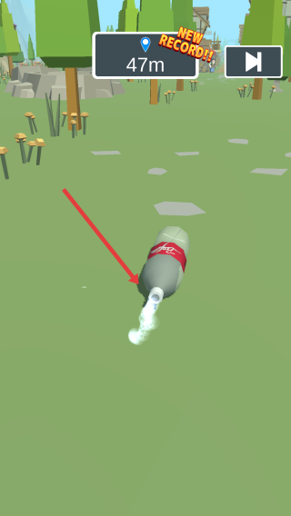 1、蓄力控制喷射力度:长按屏幕为可乐瓶收集空气,按压时间越长,积累的气体越多,松开后瓶子喷射的初始力度就越大,飞行距离可能更远。