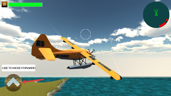 3、操控手机陀螺仪,飞机随着手机摇晃跟随,还可以根据提示点击图标,将飞机往上升。