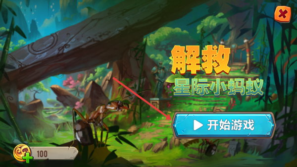 1、在界面点击开始游戏,开启这场解救星际小蚂蚁的冒险,你将进入一个奇幻的昆虫世界,开始你的救援任务。