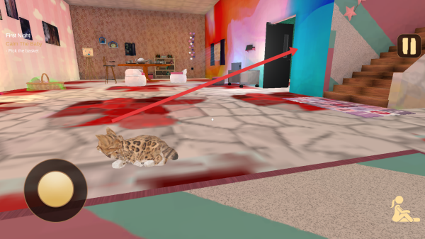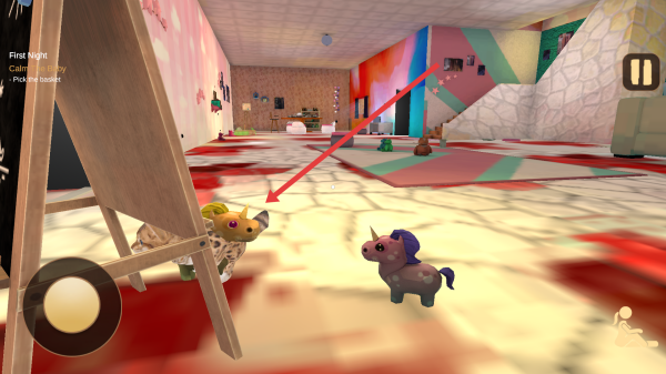 2、场景探索在借助左下角的摇杆来移动角色,对房间的各个区域进行全面遍历,包括画架后面以及楼梯口等地。