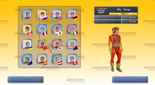 2、参赛选手选择界面包含多国运动员阵容,支持根据个人偏好配置代表队服装配色。