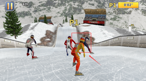 4、3D建模细致呈现运动装备细节,滑雪板划痕、冰刀反光等特效增强视觉表现力,场景破坏效果提升比赛临场感。