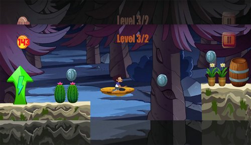 2、面对地形落差,在合适时机操作角色跳跃,跨越沟壑等障碍,继续向前探索,同时留意新金币位置,规划移动路线。