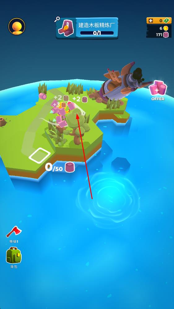 2、获取资源后,巧妙利用资源制造新土地,解锁更多木材来源,凭借木材解锁区域,探寻更高级材料的合成与获取途径。