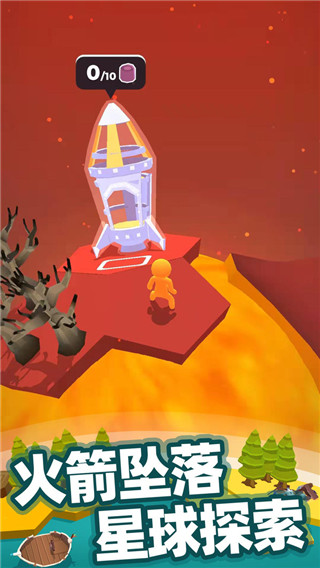 1、白手起家创奇迹:初始仅有橙色小人与火箭飞船,凭借双手采矿,积累资源,运用智慧将荒芜星球打造成美丽天堂。
