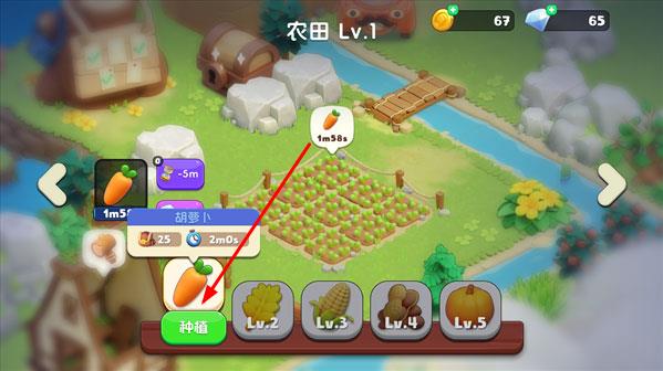 1、进入游戏,先开垦土地种植基础农作物,学习浇水、施肥等农耕技巧,收获后换取金币,开启农场经营的第一步。