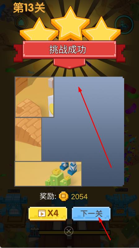 3、成功防守,显示挑战成功,获金币奖励,点击下一关,继续挑战,解锁新关卡、兵种,提升防御能力。