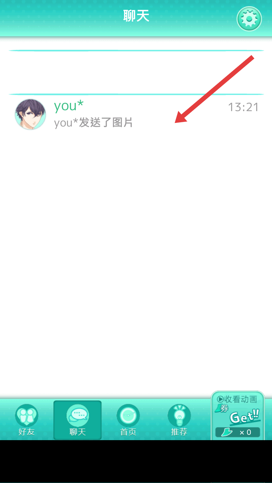 2、进入聊天界面后,选择的角色会发送图片,查看图片内容,这是推进剧情提升角色好感度的重要的步骤。