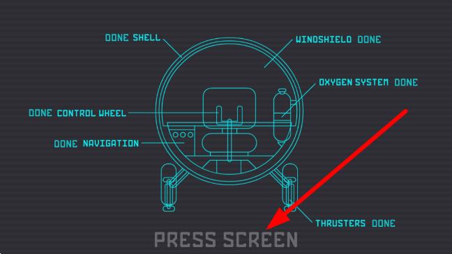 2、进入飞船蓝图界面,点击PRESS SCREEN箭头的指向,确认飞船建造完成,进入实际的场景。