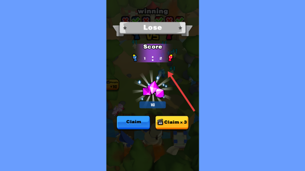 3、当界面显示失败字样时,会呈现得分等信息,可根据需求选择领取奖励的方式,之后可继续进行冒险。