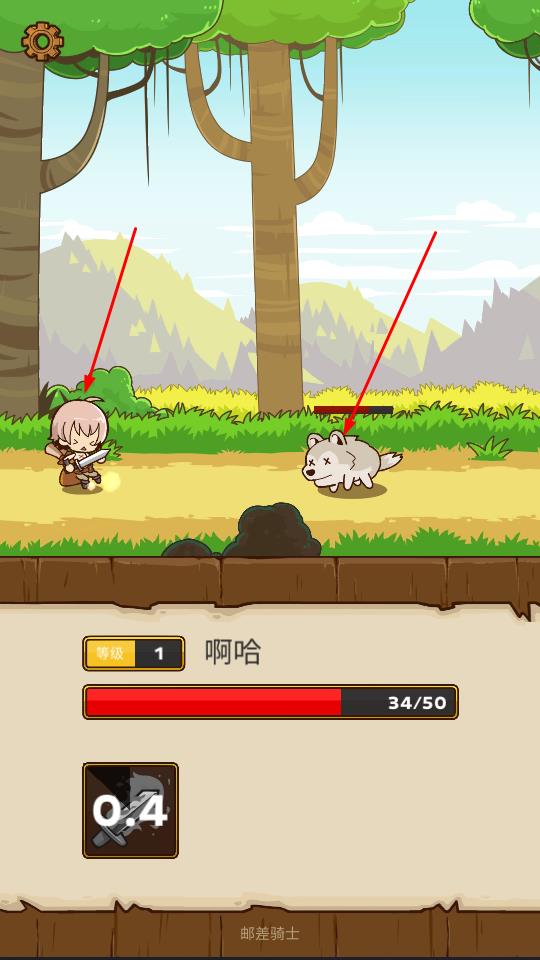1、进入森林场景,操控名为啊哈的角色,面对野狼等怪物,点击攻击按钮或利用技能,开启战斗之旅。