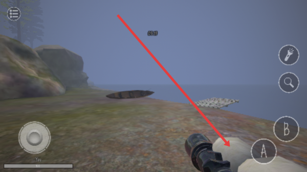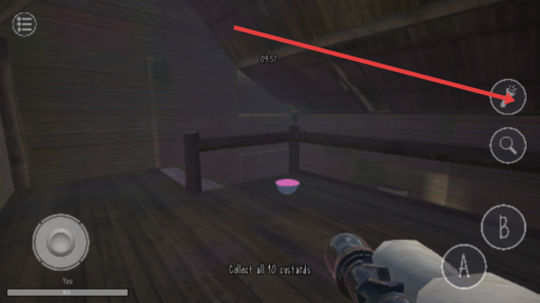 1、游戏初始用户会处于木屋场景,可利用左侧摇杆移动操作角色前进探索,同时留意右侧手电筒放大镜等功能按钮。