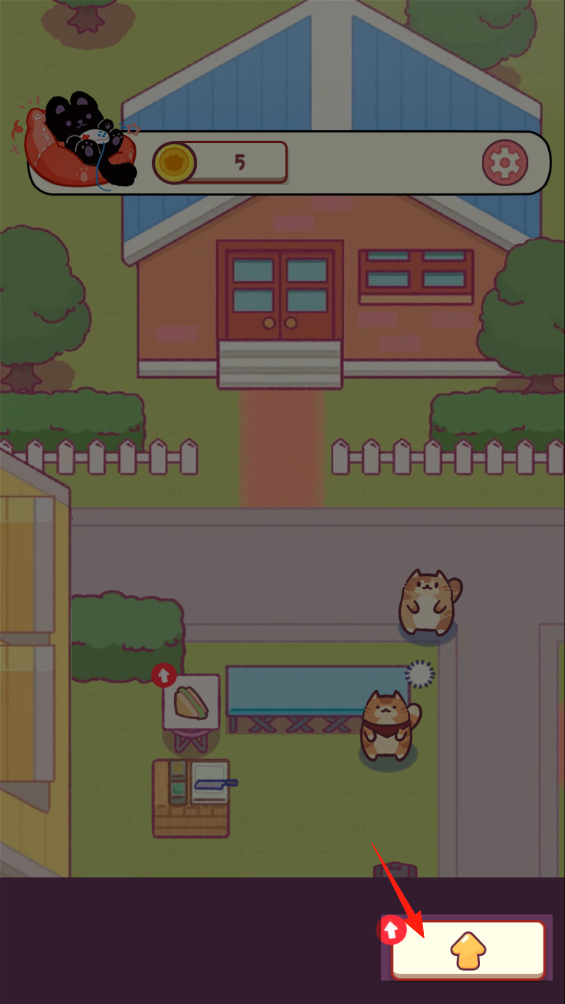 3、游戏界面下方出现向上箭头按钮,点击该按钮,可进入下一区域或开启新功能,通过点击操作,拓展游戏场景,解锁更多互动内容,丰富游戏体验,推进探索流程。