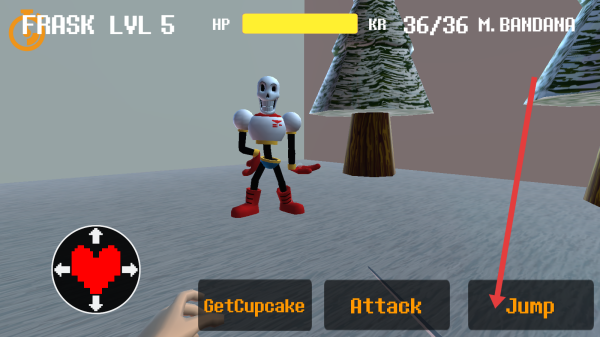 2、在用户接近骷髅角色后,依据战斗需求选择Attack发起攻击,或结合Jump调整站位。
