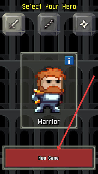 2、在选好Warrior英雄后,可以点击New-Game按钮,准备正式进入像素地牢的冒险关卡。