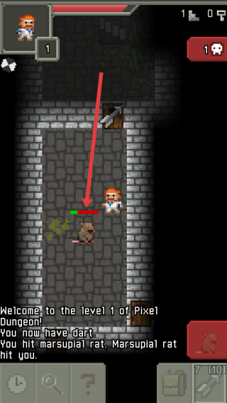 3、在游戏场景中,点击屏幕操控角色走向地牢里的敌人,通过战斗推进Level-1的冒险进程。