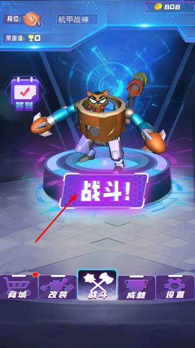 1、在主界面,查看当前段位和金币数量,点击战斗按钮进入战斗场景。