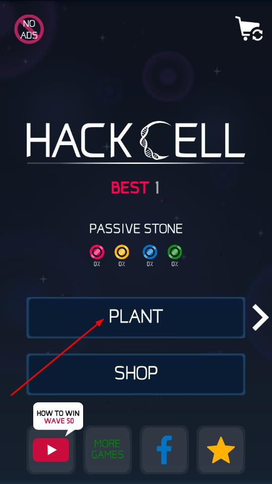 1、首先需要点击PLANT按钮进入首波关卡,踏入技能配置界面,开启细胞hack冒险,依据策略搭建技能网络。