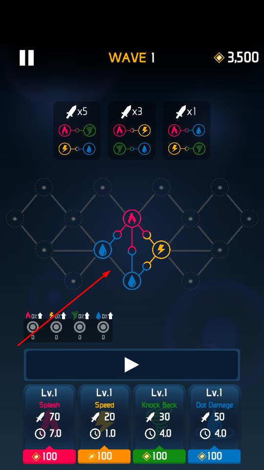 3、完成技能搭建,点击播放按钮启动关卡,应对波次敌人,闯关成功可解锁新节点持续优化技能网络完成以后既可升级。