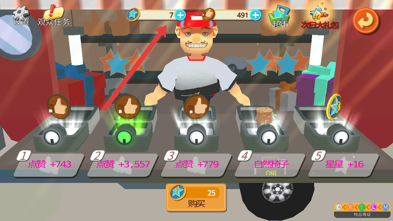 2、在飞车大逃亡的商店界面,需要消耗上方星星货币,才能购买增益的道具,提升车辆性能。