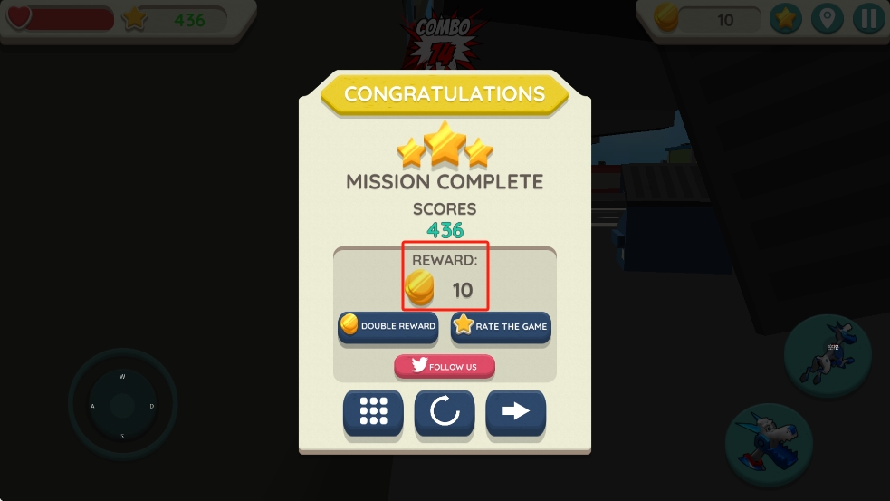 3、完成系列任务后,界面展示得分436与10金币奖励,点击对应区域领取奖励,通过箭头按钮开启新任务,延续游戏体验。