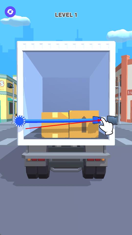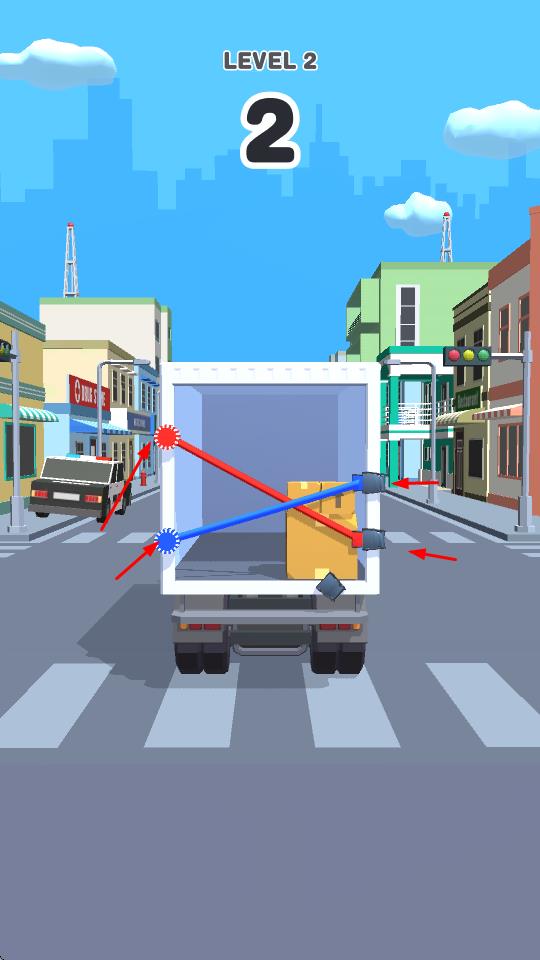 1、用绳固定防止掉落:玩家需利用有限的绳子,通过滑动操作将其布置在货车门口,形成临时屏障,拦住货物防止掉落,根据货物的数量和堆叠方式调整绳子的位置,确保固定效果。