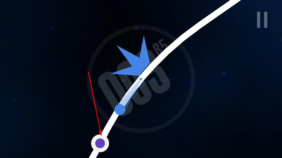 2、在轨道行进时,点击屏幕让小球切换轨道,避开蓝色障碍,保持连续航行,能够去积累分数。