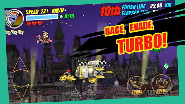 2、点击TURBO涡轮按钮加速,超越其他选手如界面显示排名10th。