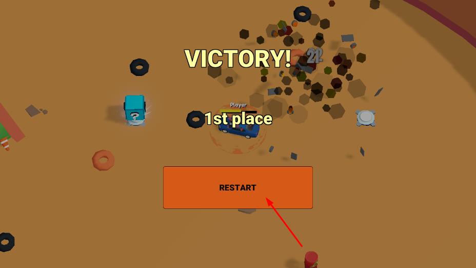 3、成功淘汰其他赛车,获得胜利,取得名次,点击RESTART可继续挑战,获取奖励用于升级赛车和解锁新武器、新赛车。